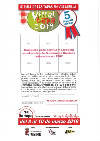 Si te quieres divertir, ganar premios y saborear por tan solo UN EURO las tapas elaboradas por los doce establecimientos participantes,  acude a la IX Ruta de las tapas en Villalbilla. Consigue tu cartilla, lee las bases y participa en el sorteo.