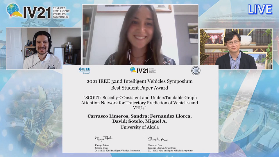 Desde el 2019 he pertenecido al grupo de investigación INVETT (INtelligent VEhicles and Traffic Technologies) de la Universidad de Alcalá. Todos los años presentan artículos al IEEE Intelligent Vehicles Symposium y este año conseguimos tener 3 artículos aceptados en el congreso. Fue mi director el que decidió nominar mi artículo al premio de mejor artículo de estudiante.