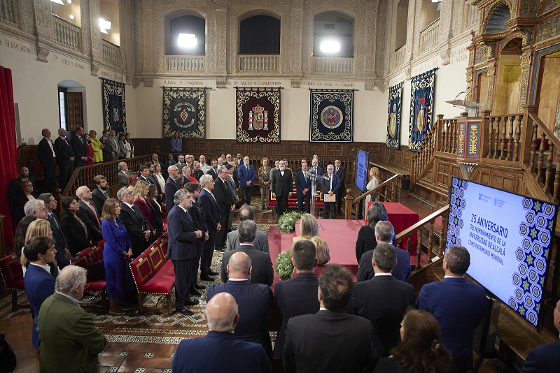 La Asociación de Empresarios del Henares (AEDHE) ha asistido al acto que la Universidad de Alcalá ha celebrado para conmemorar que hace 25 años fue declarada Patrimonio Mundial por las UNESCO.