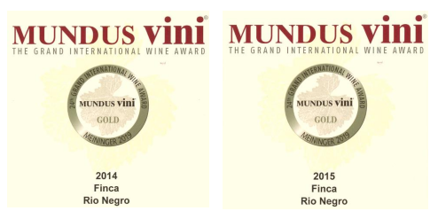 La Bodega Finca Río Negro ha logrado dos medallas de oro en el prestigioso concurso Mundus Vini, con sus tintos Finca Río Negro 2014 y 2015. Este Premio vuelve a poner los vinos Finca Rio Negro al nivel de las bodegas internacionales más prestigiosas. Además, Finca Rio Negro ha sumado tres medallas de oro más en este mismo concurso para las añadas 2010, 2011 y 2012 que se añaden a las altas puntuaciones obtenidas por esta y el resto de referencias de la bodega en publicaciones como James Suckling, Wine Enthusiast ó la Guía Peñin.