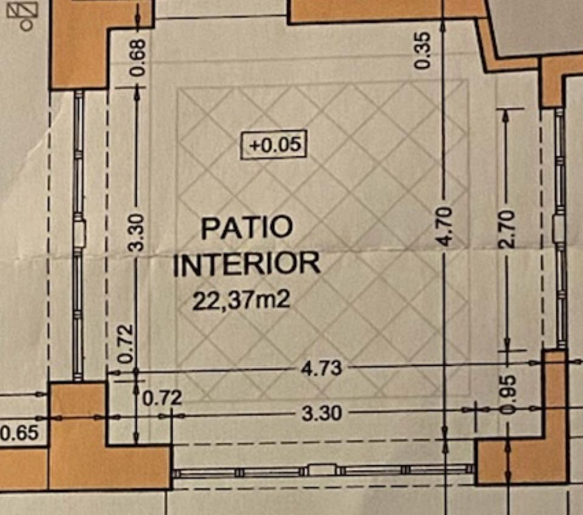 A esa superficie se le suma un valor funcional poco habitual en el centro: dos patios que totalizan aproximadamente 60 m², uno de ellos cubierto, y con uso exclusivo del patio situado en la parte trasera del edificio. En la ficha del anunciante figura además una parcela de 311 m² y que el inmueble se desarrolla en dos plantas.
